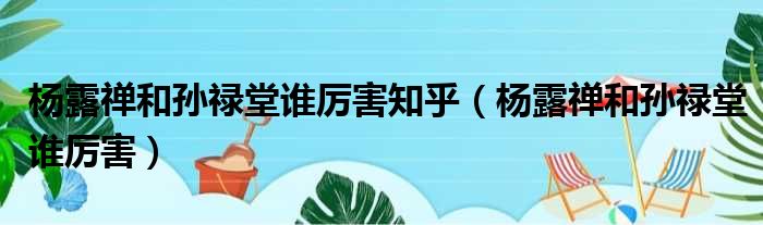 杨露禅和孙禄堂谁厉害知乎(杨露禅和孙禄堂谁厉害)