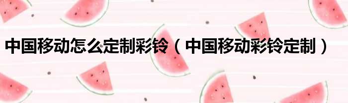 导读 大家好,今天小六子来为大家解答以下的问题,关于中国移动怎么定制彩铃,中国移动彩铃定制这个很多人还不知道,现在让我们一起来看看吧!1、