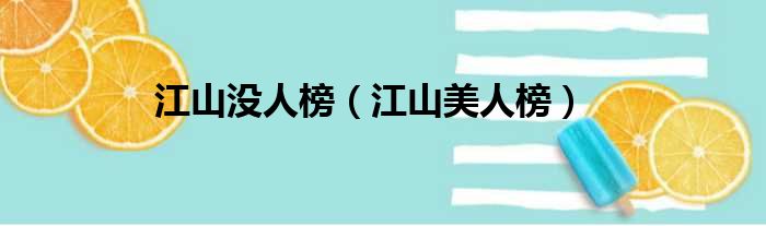 大家好,今天小六子来为大家解答以下的问题,关于江山没人榜,江山美人榜这个很多人还不知道,现在让我们一起来看看吧!