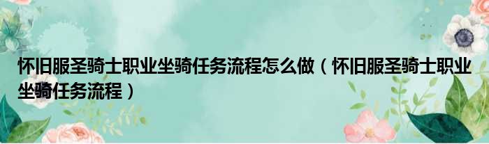 怀旧服圣骑士职业坐骑任务流程怎么做(怀旧服圣骑士职业坐骑任务流程)