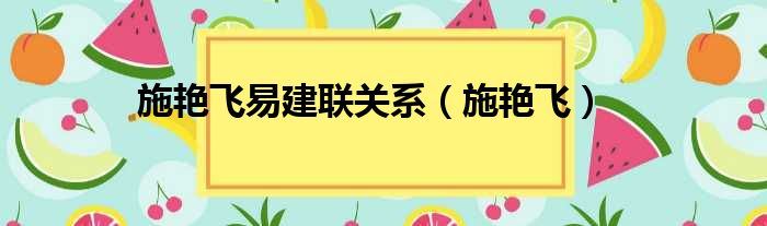 大家好,今天小六子来为大家解答以下的问题,关于施艳飞易建联关系,施艳飞这个很多人还不知道,现在让我们一起来看看吧!