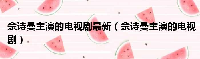 佘诗曼主演的电视剧最新(佘诗曼主演的电视剧)