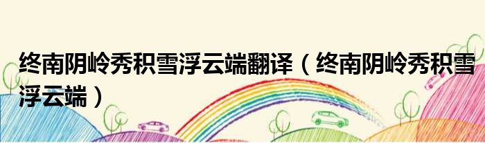导读 大家好,今天小六子来为大家解答以下的问题,关于终南阴岭秀积雪浮云端翻译,终南阴岭秀积雪浮云端这个很多人还不知道,现在让我们一起来看
