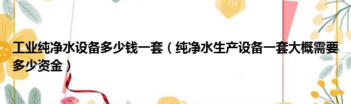 工业纯净水设备多少钱一套(纯净水生产设备一套大概需要多少资金)