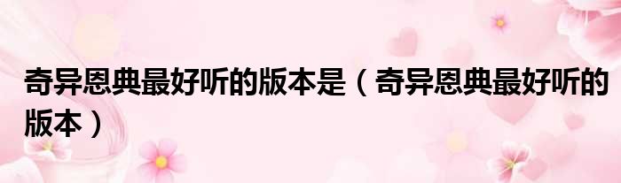 奇异恩典最好听的版本是(奇异恩典最好听的版本)