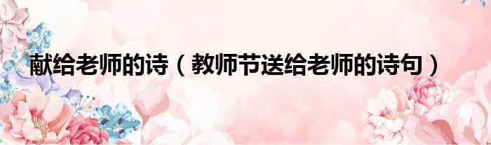 大家好,今天小六子来为大家解答以下的问题,关于献给老师的诗,教师节送给老师的诗句这个很多人还不知道,现在让我们一起来看看吧!
