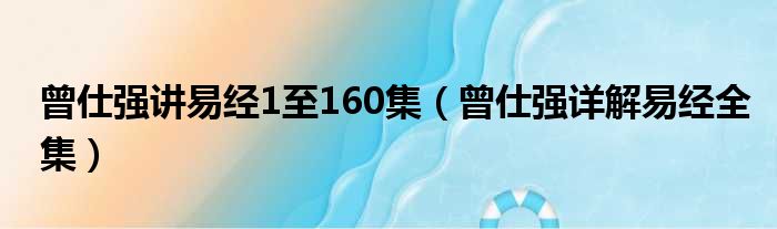 导读 大家好,今天小六子来为大家解答以下的问题,关于曾仕强讲易经1至160集,曾仕强详解易经全集这个很多人还不知道,现在让我们一起来看看吧!1
