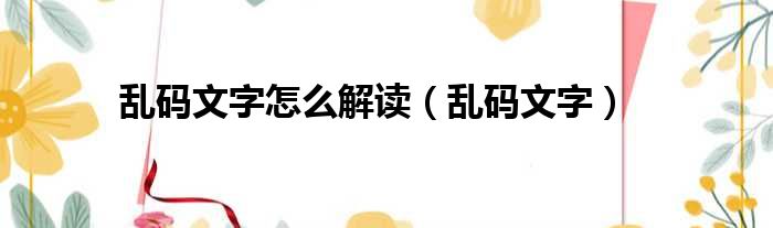 导读 大家好,今天小六子来为大家解答以下的问题,关于乱码文字怎么解读,乱码文字这个很多人还不知道,现在让我们一起来看看吧!1、这些字符是在