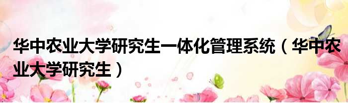 导读 大家好,今天小六子来为大家解答以下的问题,关于华中农业大学研究生一体化管理系统,华中农业大学研究生这个很多人还不知道,现在让我们一