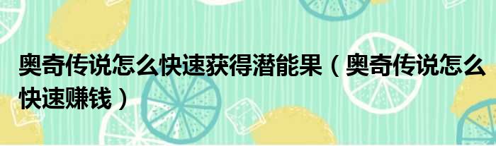 奥奇传说怎么快速获得潜能果(奥奇传说怎么快速赚钱)
