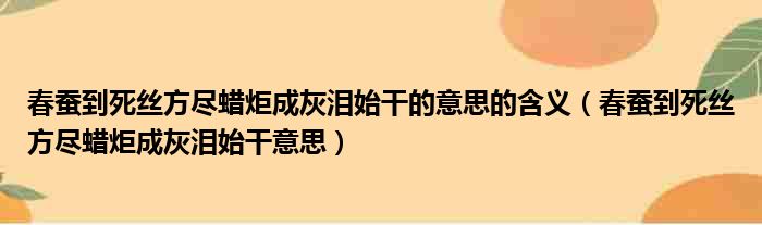 春蚕到死丝方尽蜡炬成灰泪始干的意思的含义(春蚕到死丝方尽蜡炬成灰泪始干意思)