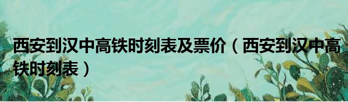 导读 大家好,今天小六子来为大家解答以下的问题,关于西安到汉中高铁时刻表及票价,西安到汉中高铁时刻表这个很多人还不知道,现在让我们一起来