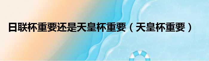 日联杯重要还是天皇杯重要(天皇杯重要)