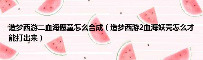 造梦西游二血海魔童怎么合成(造梦西游2血海妖壳怎么才能打出来)