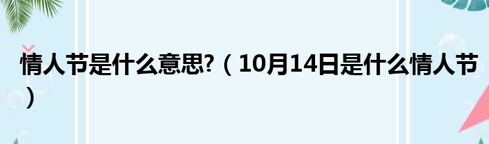 大家好,今天小六子来为大家解答以下的问题,关于情人节是什么意思?,10月14日是什么情人节这个很多人还不知道,现在让我们一起来看看吧!