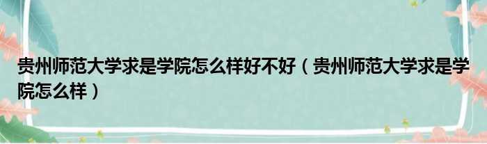 贵州师范大学求是学院怎么样好不好(贵州师范大学求是学院怎么样)