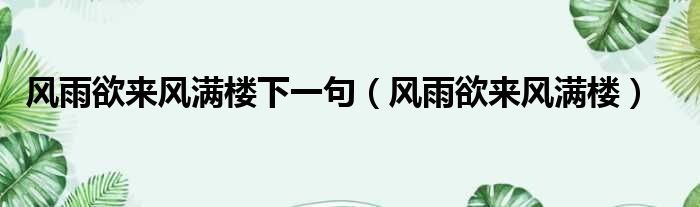 风雨欲来风满楼下一句(风雨欲来风满楼)