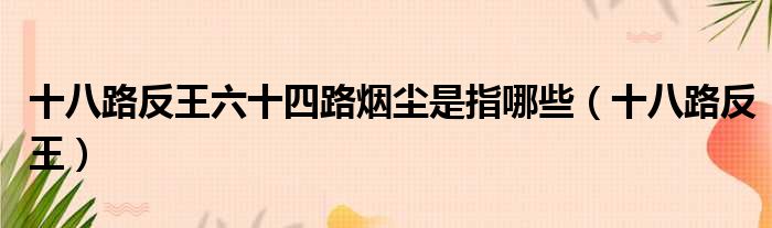 导读 大家好,今天小六子来为大家解答以下的问题,关于十八路反王六十四路烟尘是指哪些,十八路反王这个很多人还不知道,现在让我们一起来看看吧