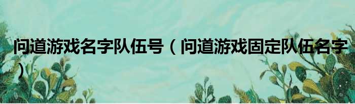 问道游戏名字队伍号(问道游戏固定队伍名字)