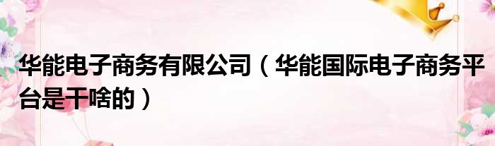 华能电子商务有限公司(华能国际电子商务平台是干啥的)