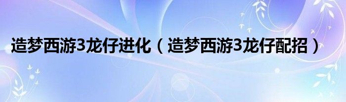 造梦西游3龙仔进化(造梦西游3龙仔配招)