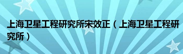大家好,今天小六子来为大家解答以下的问题,关于上海卫星工程研究所宋效正,上海卫星工程研究所这个很多人还不知道,现在让我们一起来看看吧!