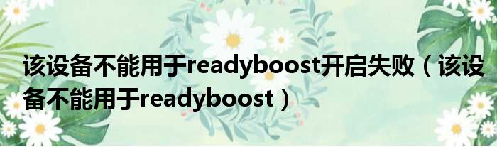 该设备不能用于readyboost开启失败(该设备不能用于readyboost)