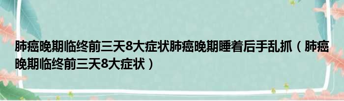 肺癌晚期临终前三天8大症状肺癌晚期睡着后手乱抓(肺癌晚期临终前三天8大症状)