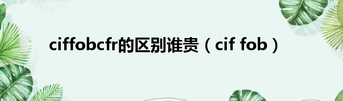 导读 大家好,今天小六子来为大家解答以下的问题,关于ciffobcfr的区别谁贵,cif fob这个很多人还不知道,现在让我们一起来看看吧!1、三个常用