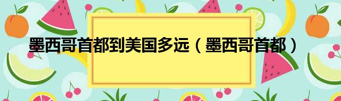 导读 大家好,今天小六子来为大家解答以下的问题,关于墨西哥首都到美国多远,墨西哥首都这个很多人还不知道,现在让我们一起来看看吧!1、墨西哥