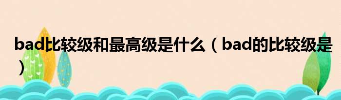 导读 大家好,今天小六子来为大家解答以下的问题,关于bad比较级和最高级是什么,bad的比较级是这个很多人还不知道,现在让我们一起来看看吧!1、