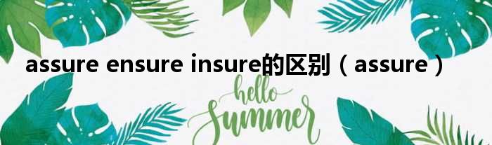 导读 大家好,今天小六子来为大家解答以下的问题,关于assure ensure insure的区别,assure这个很多人还不知道,现在让我们一起来看看吧!1、as