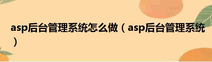导读 大家好,今天小六子来为大家解答以下的问题,关于asp后台管理系统怎么做,asp后台管理系统这个很多人还不知道,现在让我们一起来看看吧!1、