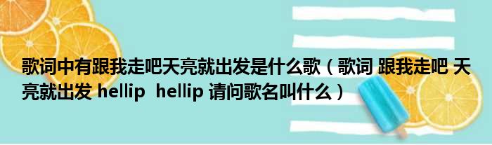 歌词中有跟我走吧天亮就出发是什么歌(歌词 跟我走吧 天亮就出发 hellip hellip 请问歌名叫什么)