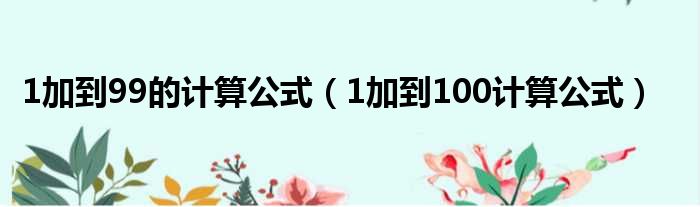 大家好,今天小六子来为大家解答以下的问题,关于1加到99的计算公式,1加到100计算公式这个很多人还不知道,现在让我们一起来看看吧!