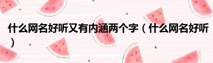 导读 大家好,今天小六子来为大家解答以下的问题,关于什么网名好听又有内涵两个字,什么网名好听这个很多人还不知道,现在让我们一起来看看吧!1