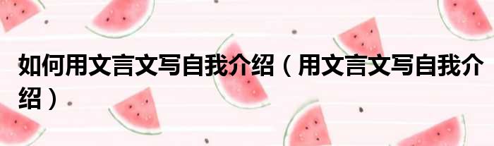 如何用文言文写自我介绍(用文言文写自我介绍)