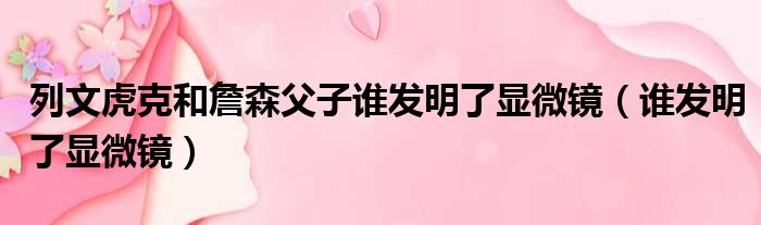 大家好,今天小六子来为大家解答以下的问题,关于列文虎克和詹森父子谁发明了显微镜,谁发明了显微镜这个很多人还不知道,现在让我们一起来看看吧!
