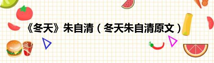 导读 大家好,今天小六子来为大家解答以下的问题,关于《冬天》朱自清,冬天朱自清原文这个很多人还不知道,现在让我们一起来看看吧!1、路上人少