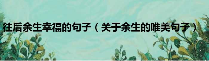 导读 大家好,今天小六子来为大家解答以下的问题,关于往后余生幸福的句子,关于余生的唯美句子这个很多人还不知道,现在让我们一起来看看吧!1、