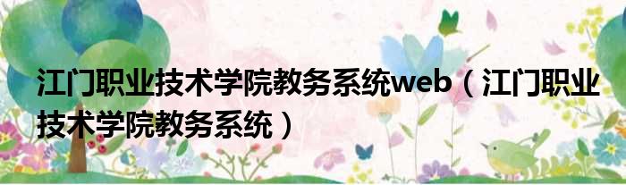 江门职业技术学院教务系统web(江门职业技术学院教务系统)