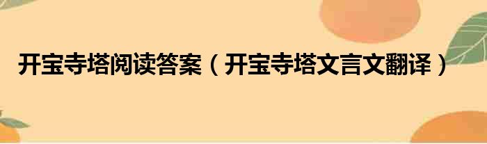 导读 大家好,今天小六子来为大家解答以下的问题,关于开宝寺塔阅读答案,开宝寺塔文言文翻译这个很多人还不知道,现在让我们一起来看看吧!1、开