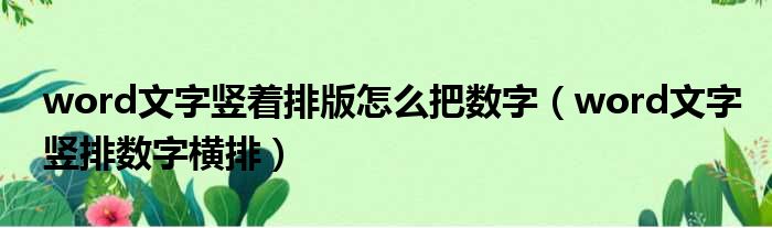 word文字竖着排版怎么把数字(word文字竖排数字横排)