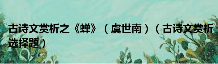 大家好,今天小六子来为大家解答以下的问题,关于古诗文赏析之《蝉》,虞世南,古诗文赏析选择题这个很多人还不知道,现在让我们一起来看看吧!