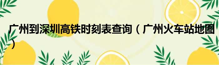 广州到深圳高铁时刻表查询(广州火车站地图)