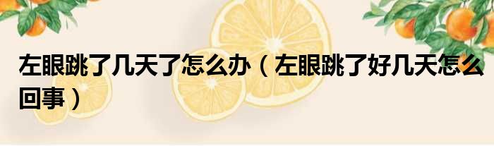 左眼跳了几天了怎么办(左眼跳了好几天怎么回事)