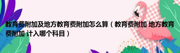 导读 大家好,今天小六子来为大家解答以下的问题,关于教育费附加及地方教育费附加怎么算,教育费附加 地方教育费附加 计入哪个科目这个很多人