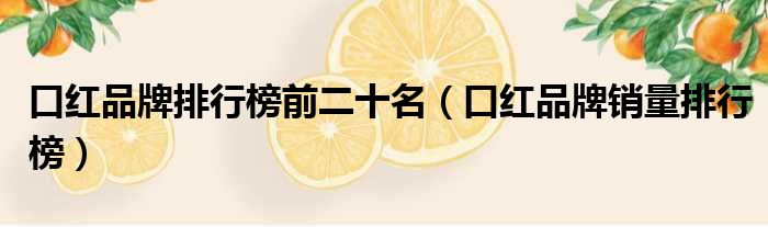 大家好,今天小六子来为大家解答以下的问题,关于口红品牌排行榜前二十名,口红品牌销量排行榜这个很多人还不知道,现在让我们一起来看看吧!