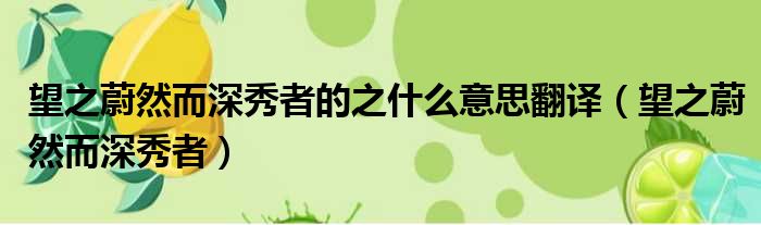 导读 大家好,今天小六子来为大家解答以下的问题,关于望之蔚然而深秀者的之什么意思翻译,望之蔚然而深秀者这个很多人还不知道,现在让我们一起