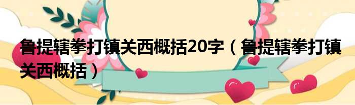 鲁提辖拳打镇关西概括20字(鲁提辖拳打镇关西概括)